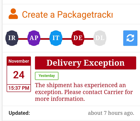 물론 배송지 오입력, 오배송 등의 이슈로 인한 메시지도 있지만 일반적인 경우 Delivery Exception은 크게 문제되지 않습니다.