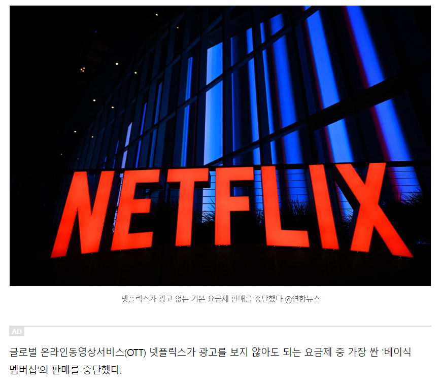 넷플릭스는 최근 “신규 또는 재가입 회원에게는 베이식 멤버십이 더는 제공되지 않는다”라며 월 9,500원짜리 요금제인 베이식 멤버십의 신규 구독을 제한한다고 밝히기도 했는데요. 앞으로 넷플릭스 신규 가입자나 재가입 회원이 광고 없이 콘텐츠를 보려면 최소 4천원이 비싼 월 13,500원의 스탠다드 요금제를 사용해야 합니다.
