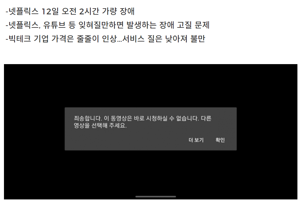 이번 장애에 대한 넷플릭스의 대처는 무시인데요. 한국 시장에 대해서 이렇게 처리해도 되는지 정말 분통이 터질 지경입니다.
